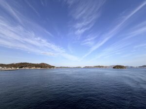 島での滞在時間は約7時間強(08:42〜16:02)だったので、軽食と飲み物は持参して、鑑賞最優先で周りました。カフェが沢山あるので困ることはなさそうですが、沢山回るつもりだったため時間との勝負だったことと、12時で一旦閉まる展示もあったため、移動中に小腹を満たすことができてとても良かったです。海を見ながらベンチでコーヒーを飲みながら、おにぎりやパン、ナッツやフルーツをちょこちょこつまみました。